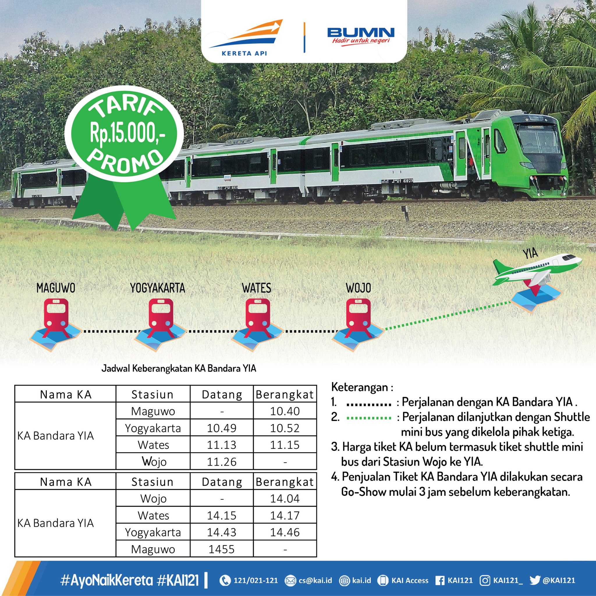 そんな中、降って湧いて出てきたジョグジャの空港快速。おいおい、空港新線出来てないじゃないか、というかそれ以前にPrameksを拡充すれば、十分空港快速なんだけどなぁ(Magwo駅前がジョグジャ空港です)というツッコミを入れるに十分だったのですが、なんとこれ、ジョグジャ新国際空港の供用開始に合わせ、既存のWojo駅からバス連絡することで、空港快速にしてしまうという、また強引な列車でした・・・。5月6日から空港快速として、運行を開始しています。