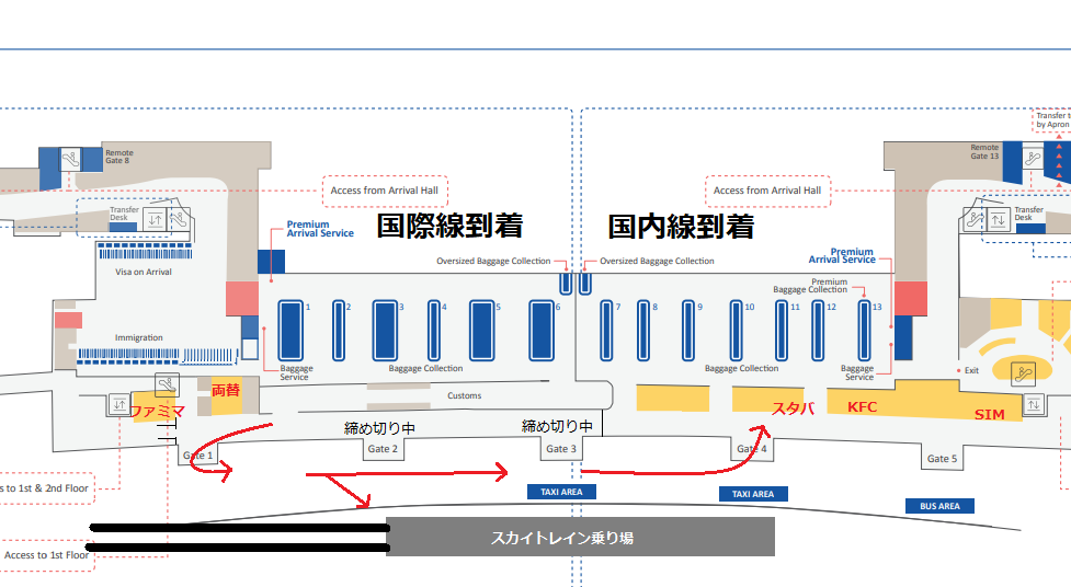 スカイトレインの高架下を歩いて、ようやく国内線ターミナルの出口が