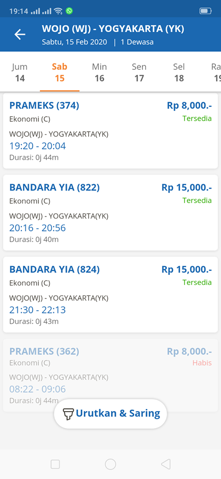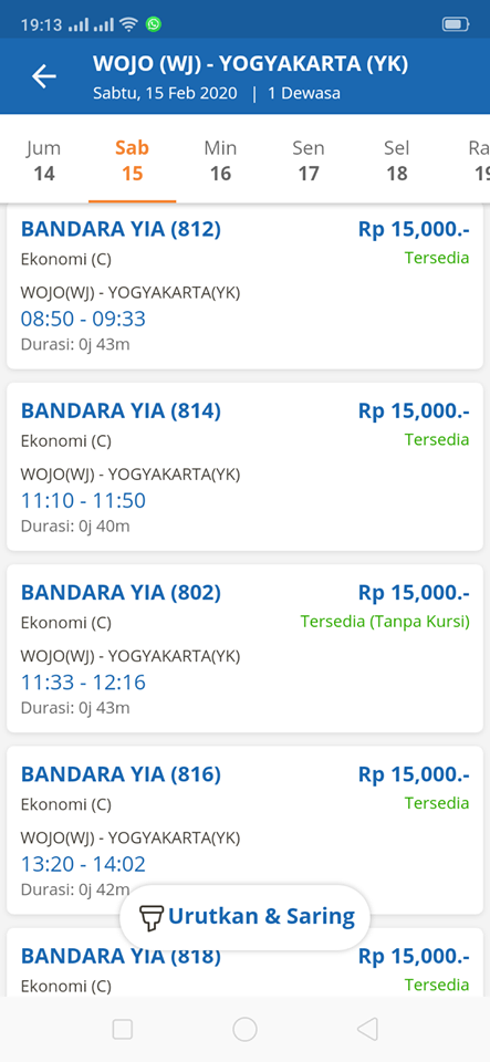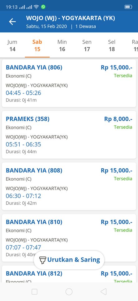 唯一、時刻を知る方法はKAIの公式アプリ、KAI Accessからです。従来、長距離特急・急行に限られていましたが、一部の普通列車の購入が国営QR決済アプリLinkajaと紐づけることで出来るようになりました(外国人にはハードル高すぎ、Go PayやOVOと連携してもらいたいですが無理でしょう)。なので、時刻表のみはそちらで確認が可能。ただ、Wojo駅の名前を知らないと出せないというのは、一般観光客には無理でしょう。。