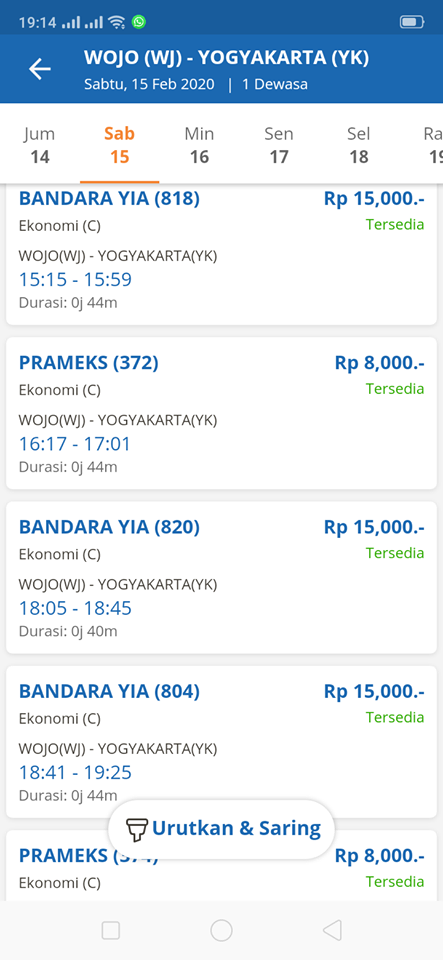 さて、その空港アクセス補助金列車は2019年5月6日の新空港ソフトオープンと同時に、Maguwo~Yogyakarta~Wojo間に1往復の空港快速、KA Bandara YIAとして設定。さらに当時運行されていた毎日運転の臨時列車Solo Ekspres、それに定期格上げされた急行Joglosemarkerto(昔の特別快速Jogrokerto)とKetoarjo発着のPerameksの一部がWojoに停車し空港アクセスとに使えるようにしましたが、それにしても日に上下8本と、空港アクセス鉄道として正直オワッテいる状態でした。というか、前日には既に満席になっているPrameksなんて、有効本数としてカウント出来ませんし。さすがに運行開始当初はこっそりとリリースしましたが、それっきりで果たして走っているのかどうかすらわからない状態でした・・・。公式ページからは運行に関する情報無し。走らせてももうからない列車なので宣伝する必要などないのです。