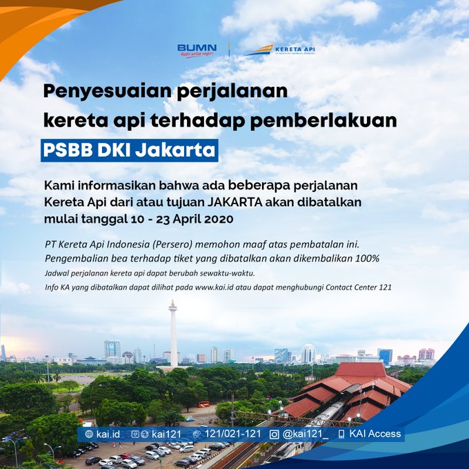 FDTJさんのお知らせにもある通り、当初ジャカルタ発着全運休の予定だったKAIの長距離列車はバンドン線、北本線、南本線にそれぞれ数本程度の最低限の輸送力は確保されることとなり、出稼ぎ出戻り客への一定の配慮が見られます。この辺もギリギリまで政府の駆け引きがあったんじゃないかなぁと思っています。当然、最低限の輸送力を確保せよと言ったのはお乞食なのではないかと思います。これでは沿線首長たちは怒り心頭ですね。