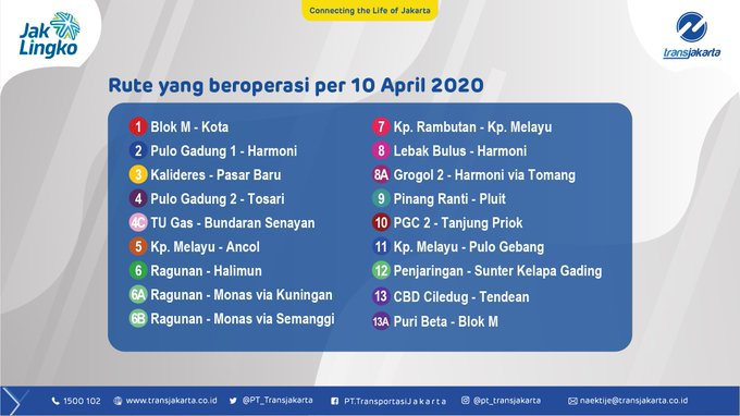 これまでも変更の際には毎度お知らせしているジャカルタ市内交通の運行状況ですが、当面の間の運行方針が定まりましたので、再度お知らせします。3月2日にデポック在住の2名が“日本人からの経路”(感染経路と日時を遡ると、コロナを移されたのはむしろ日本人だった事も判明)でコロナ感染したと公表されて以来、わずか1か月で3000人(4月9日現在3293人)という勢いの感染拡大。とにかくも、