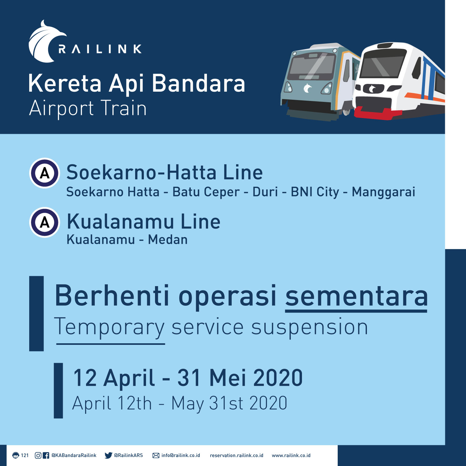 Railinkはクアラナム線含め12日以降全運休となります