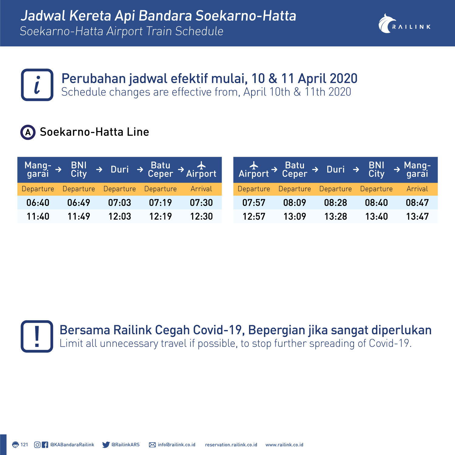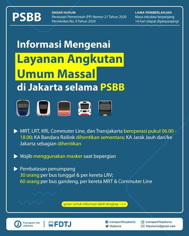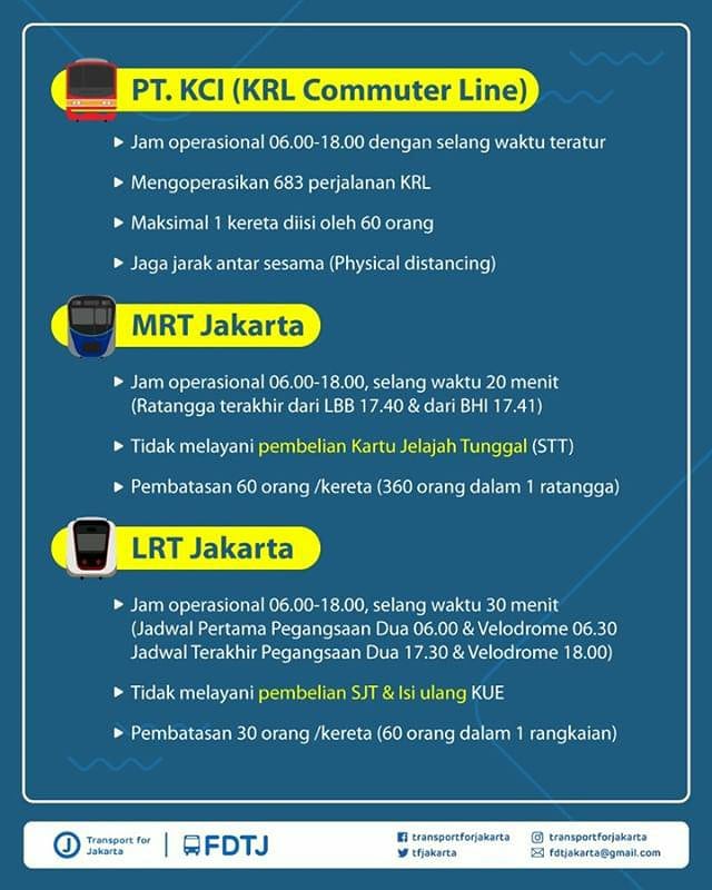 そんなわけで、MRTJ、LRTJ、TJの他、4月7日に変更されたばかりのKCIコロナ暫定ダイヤも、本日から再変更となっています。あまりの政府の朝令暮改ぶりに各社とも対応に苦慮しているというのがよくわかります。ジャカルタ特別州政府下にあり、国の許可が不要なMRTJ、LRTJ、TJは運行時間帯の短縮以外には大きな変化はありませんが、注目はこれまでジャカルタ特別州方針と対立していたKCI、それにKAIの対応です。各社の運行情報はプロマニア集団、FDTJがわかりやすくまとめてくれていますので、以下をご参照ください。