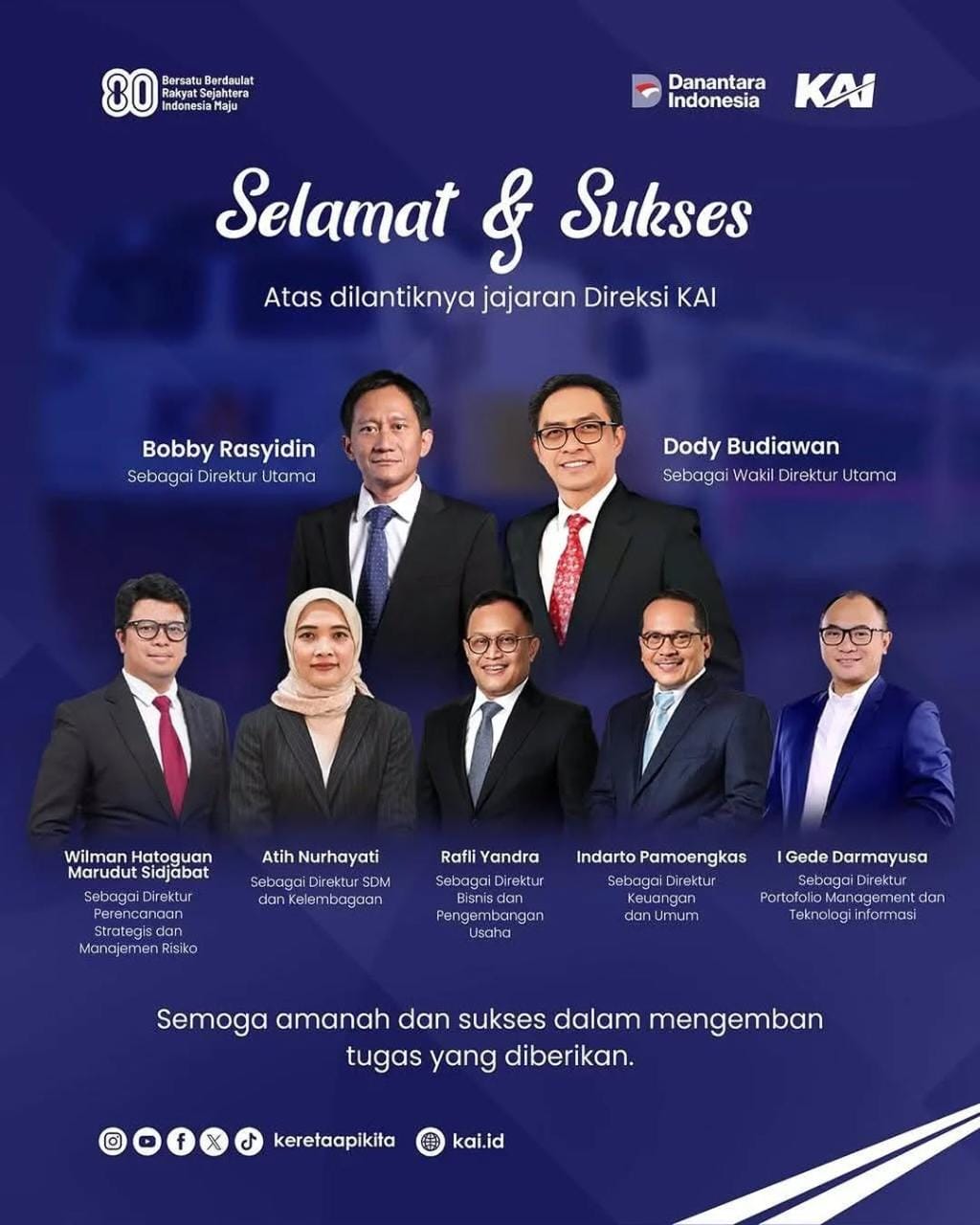 8月12日付けで就任したボビー・ラシディン新社長は前のPT LENの社長。経歴を見るなり、通信分野の技術系出身者のようです。注目すべきは副社長以下の顔ぶれで、ほとんどが外部出身者となっています。今回から幹部任命権が、プラボウォ大統領肝いりで設立された国営企業HDであるダナンタラにも委ねられていることから、かなり政治臭い人事と言えそうです。少なくとも、大統領は国営企業省に対して、大規模な倹約令を出していることから、鉄道ファン向けのイベントは今後、縮小傾向になることは間違いありません。現に、季節のラッピング罐は昨年末から数が大幅に減少しており、80周年にも関わらず今年の独立記念ラッピングはわずか4機。毎年恒例の駅の装飾すらままならない状況を考えると、この先、5年間はネタに乏しい冬の時代になると言えそうです。日本との関係性も、正直この顔ぶれを見ると、かなり怪しい感じがします。