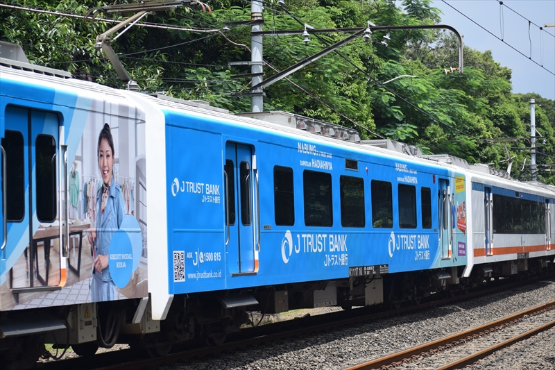 なお、第二弾?として、既に別の銀行ラッピングも登場しています。お金持ち対象の列車だけあって、銀行とかに広告が限定されているんでしょうかね??最近、西日本を中心に京急カラーラッピングの羽田広告が増えていますけど、ここでやってくれませんかね?うなぎ上りに訪日インドネシア人が増えている(逆に日本人のチケットが取れなくて大変!!)わけで、直行エアアジアまで飛んでしまうご時世なんですから。2ドア、両開きで、側面は特に似合いそうな気がします。その前にHISさんあたりがやってからですかね(バンコクのエアポートレイルリンクにラッピングしましたから、ここでもやりそうな気がします)。